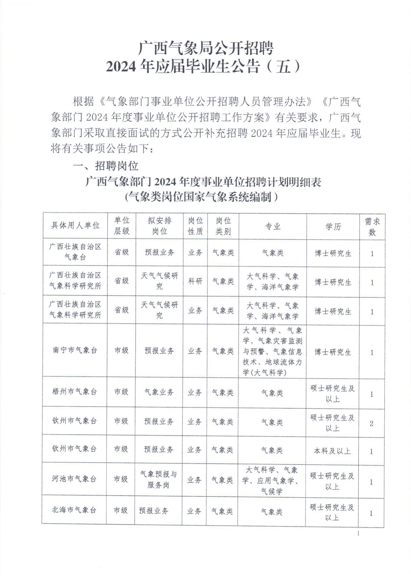 廣西氣象局公開招聘2024年度應屆畢業(yè)生13人公告(五)