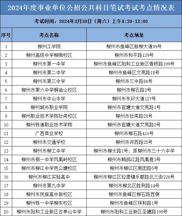 今年,25009名考生將在柳州市參加2024年度柳州市事業(yè)單位公開考試招聘工作人員公共科目筆試,柳州市考區(qū)共設(shè)20個筆試考點。