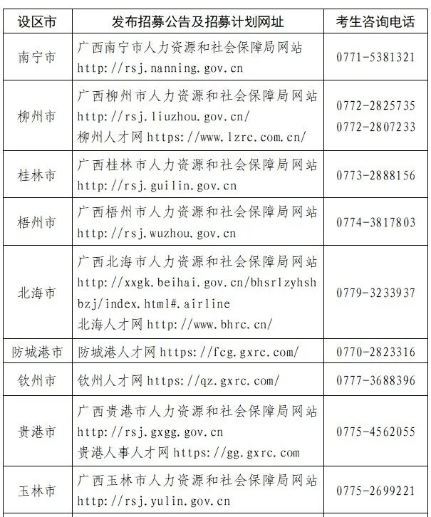 6.各市原則上可拿出不低于總名額數(shù)20%的名額,定向招募所轄縣(市、區(qū))生源地或戶籍地的高校畢業(yè)生。同等條件下,優(yōu)先招募脫貧戶、低保戶、零就業(yè)家庭的高校畢業(yè)生和已參加住院醫(yī)師規(guī)范化培訓的醫(yī)學類畢業(yè)生,報考國家和自治區(qū)鄉(xiāng)村振興重點幫扶縣、執(zhí)行艱苦邊遠地區(qū)津貼政策的崗位,可降低開考比例(具體以各市公告為準)。