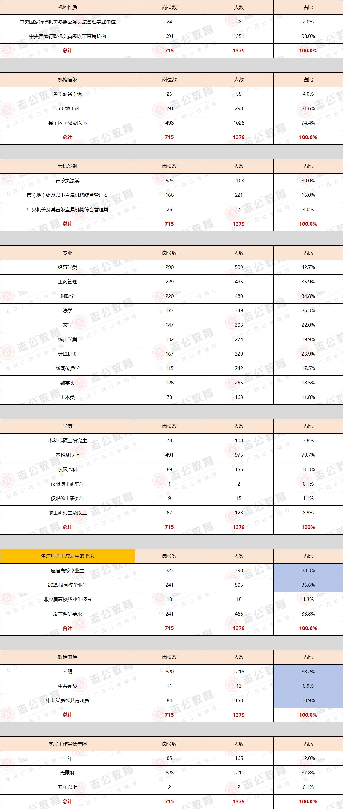 2025國家公務員考試公告|職位表已于10月14日公布,本次國考全國有20810個職位,共計劃招錄3.97萬人,其中廣西考區(qū)共715個崗位,招錄1379人。
