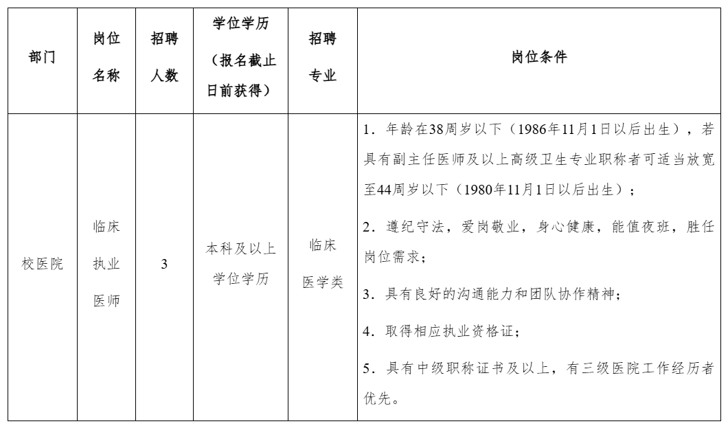 擬公開招聘醫(yī)務(wù)工作人員3名,具體崗位及相關(guān)條件要求詳見下表: