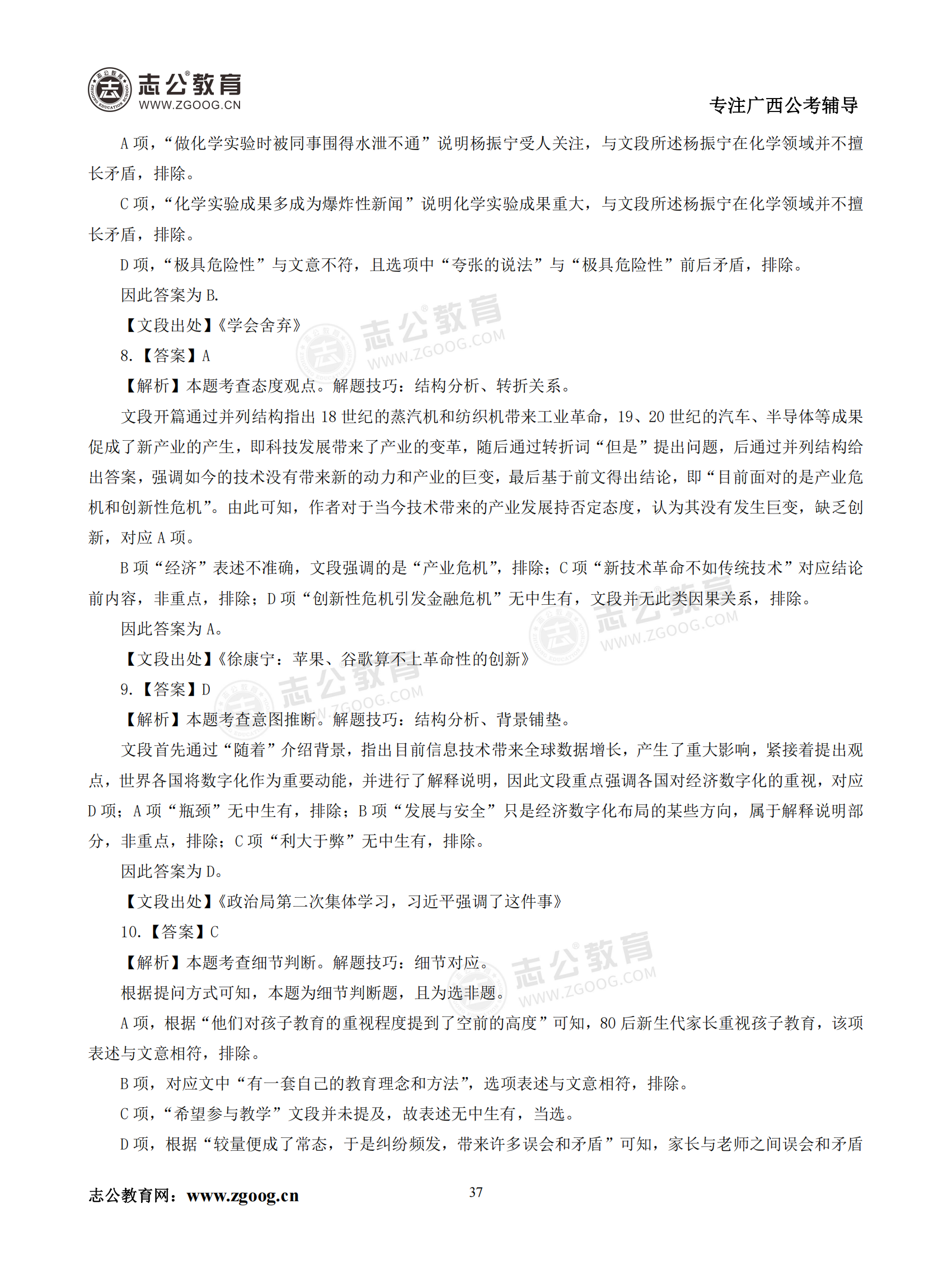 【公考模塊練習(xí)】言語理解題四(答案)