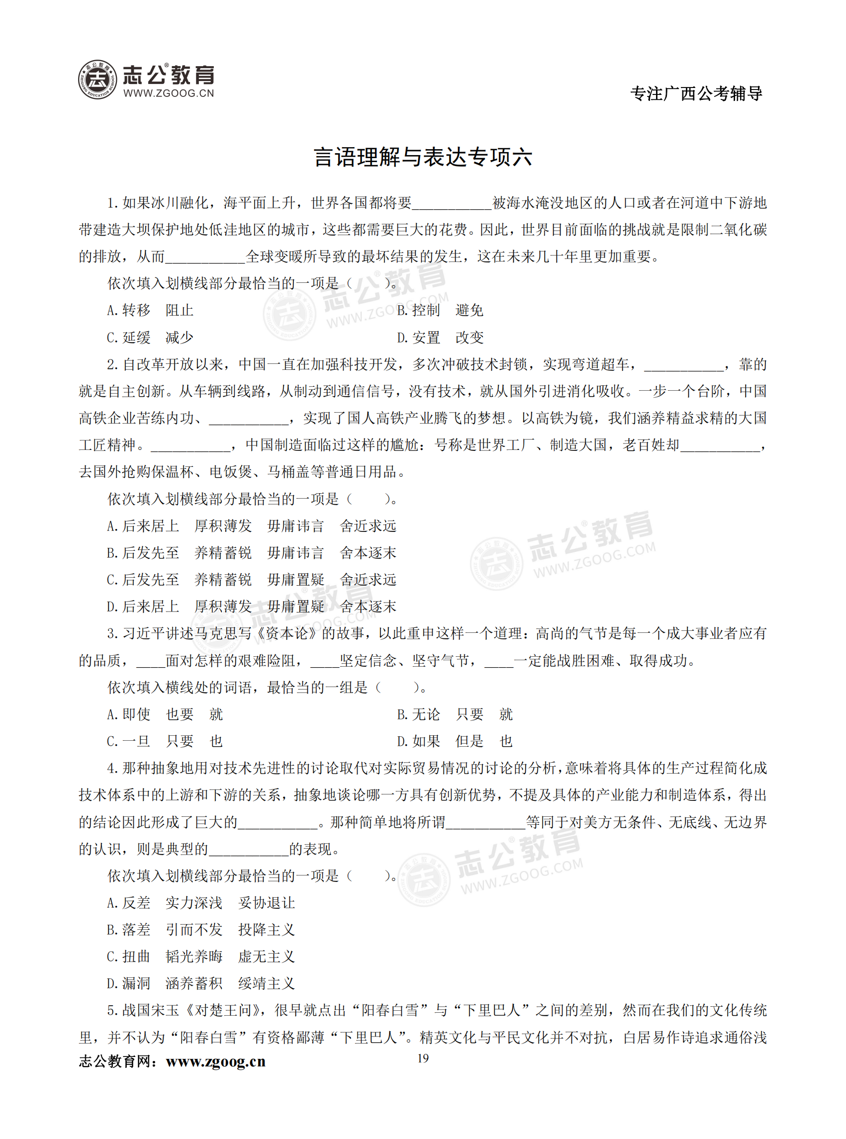 【公考模塊練習(xí)】言語(yǔ)理解題六(試題)