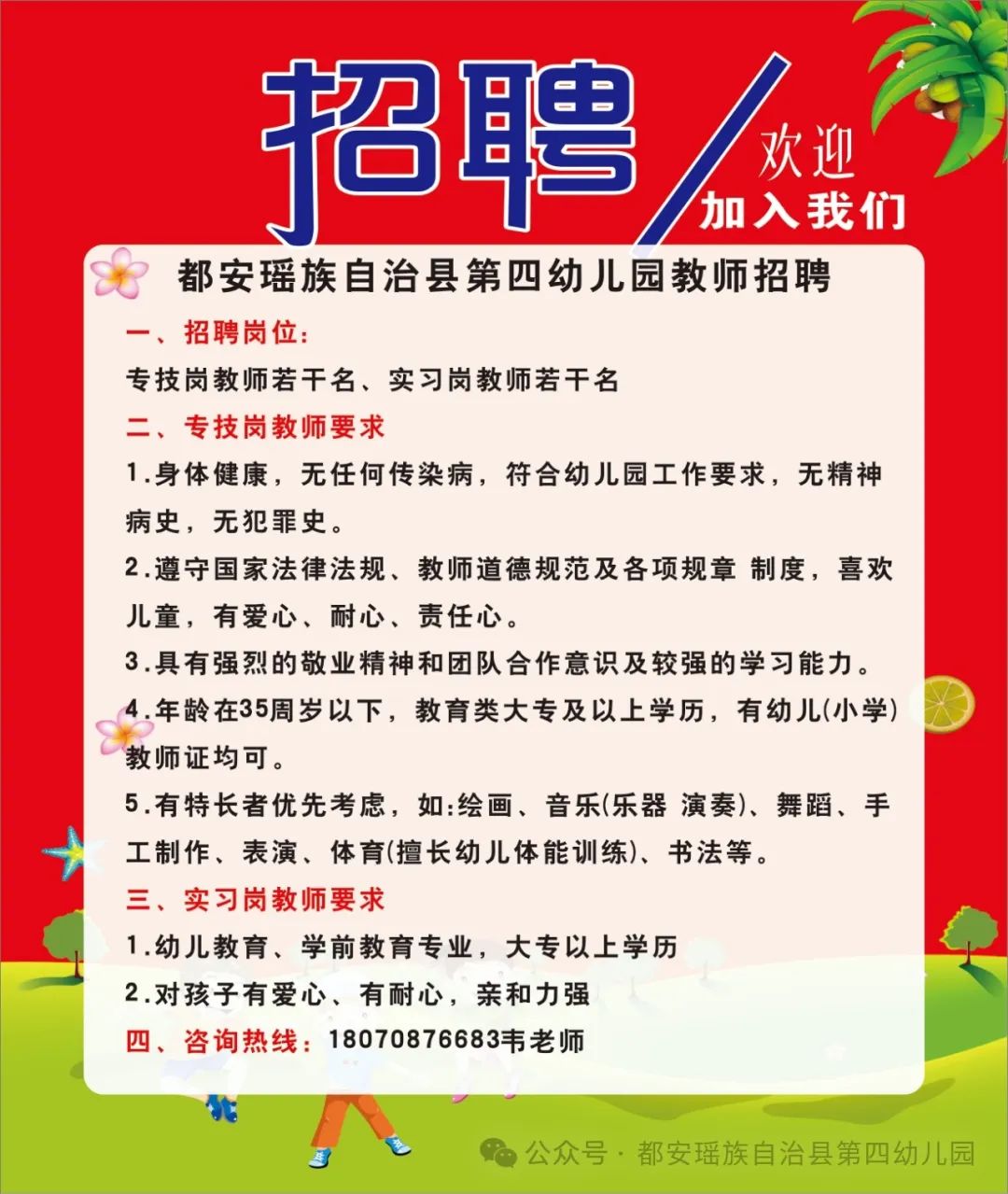 原文標(biāo)題:安瑤族自治縣第四幼兒園誠聘教師與廚房工作人員若干人