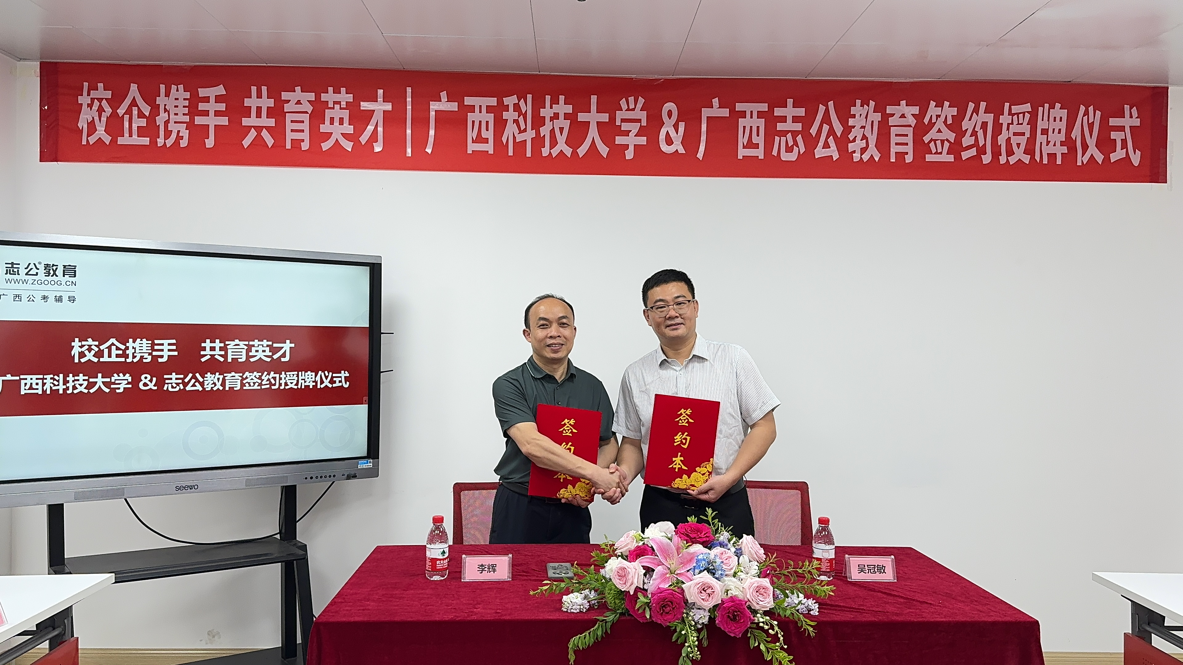 2025年5月9日,志公教育柳州分校與廣西科技大學(xué)外國語學(xué)院在深入交流與友好協(xié)商的基礎(chǔ)上,于廣西科技大學(xué)成功舉行戰(zhàn)略合作簽約儀式。此次活動由志公教育CBG總經(jīng)理吳冠敏先生帶隊(duì),廣西科技大學(xué)外國語學(xué)院黨委書記李輝、廣西科技大學(xué)"種夢領(lǐng)航"工作室負(fù)責(zé)人張林微及師生代表共同參與,標(biāo)志著雙方在產(chǎn)教融合、人才培養(yǎng)及大學(xué)生就業(yè)創(chuàng)業(yè)領(lǐng)域的合作邁入新階段。