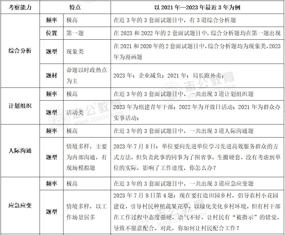 貴港事業(yè)單位面試主要采用結(jié)構(gòu)化面試形式;審題時間:2分鐘;答題時間:12分鐘;考查題量:4題為主??紕?wù)情況:考官不讀題、統(tǒng)一計時、超時會提醒??疾轭}型:綜合分析(極高)、計劃組織(極高)、人際溝通(極高)、應(yīng)急應(yīng)變(較高)、貫徹執(zhí)行(較高)、自我認知(一般)。