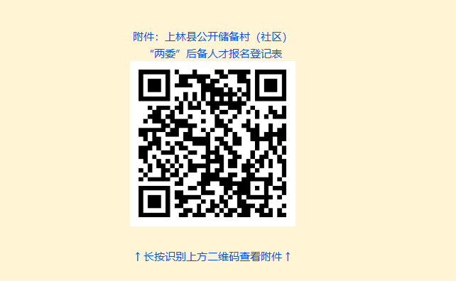 報(bào)名方式一:現(xiàn)場報(bào)名?,F(xiàn)場報(bào)名地點(diǎn)為各鄉(xiāng)鎮(zhèn)黨建辦,現(xiàn)場報(bào)名者須填寫《上林縣公開儲(chǔ)備村(社區(qū))“兩委”后備人才報(bào)名登記表》(詳見附件,以下簡稱《報(bào)名登記表》),并提供本人身份證、學(xué)歷學(xué)位證書、戶口簿原件及復(fù)印件(原件供現(xiàn)場審核;復(fù)印件以供存檔,不退回)各1份,近期小二寸正面免冠照片2張。