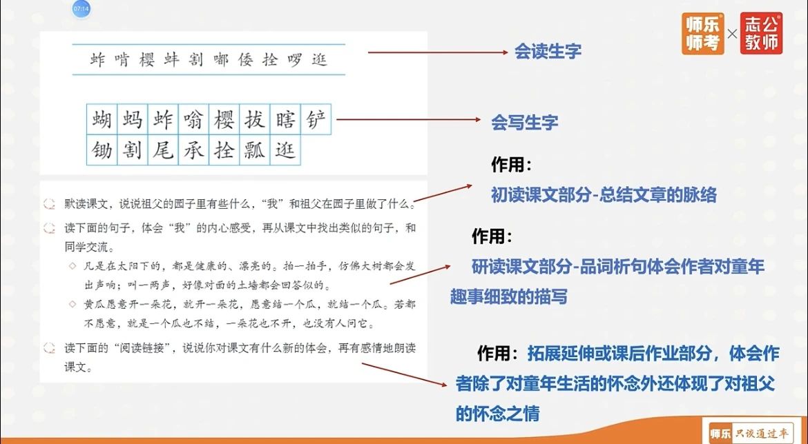 特惠價(jià):199元 ?結(jié)合歷年考情,分模塊系統(tǒng)梳理考試篇目 ?分篇目分步驟詳解教學(xué)設(shè)計(jì),提升備課速度 毫無思路怎么辦? 缺乏知識(shí)儲(chǔ)備怎么辦? 網(wǎng)課將精選核心課型 深入進(jìn)行教材梳理 網(wǎng)課內(nèi)容示例 ↓↓ 搶先體驗(yàn)價(jià):3.9元 ??語/數(shù)/英/幼/音/體/美/文綜/理綜 ??各學(xué)科高頻??计?/p>