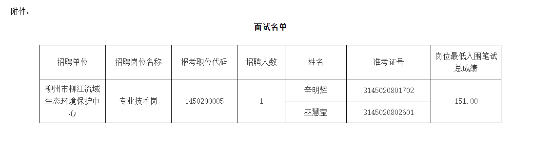 根據(jù)《柳州市2025年度上半年事業(yè)單位公開考試招聘工作人員公告》、《關(guān)于印發(fā)〈廣西壯族自治區(qū)事業(yè)單位公開招聘工作人員面試工作規(guī)則(試行)〉的通知》(桂人社發(fā)〔2012〕79號)的規(guī)定,2025年柳州市生態(tài)環(huán)境局擬組織所屬事業(yè)單位公開考試招聘工作人員面試,現(xiàn)將相關(guān)事宜公告如下: