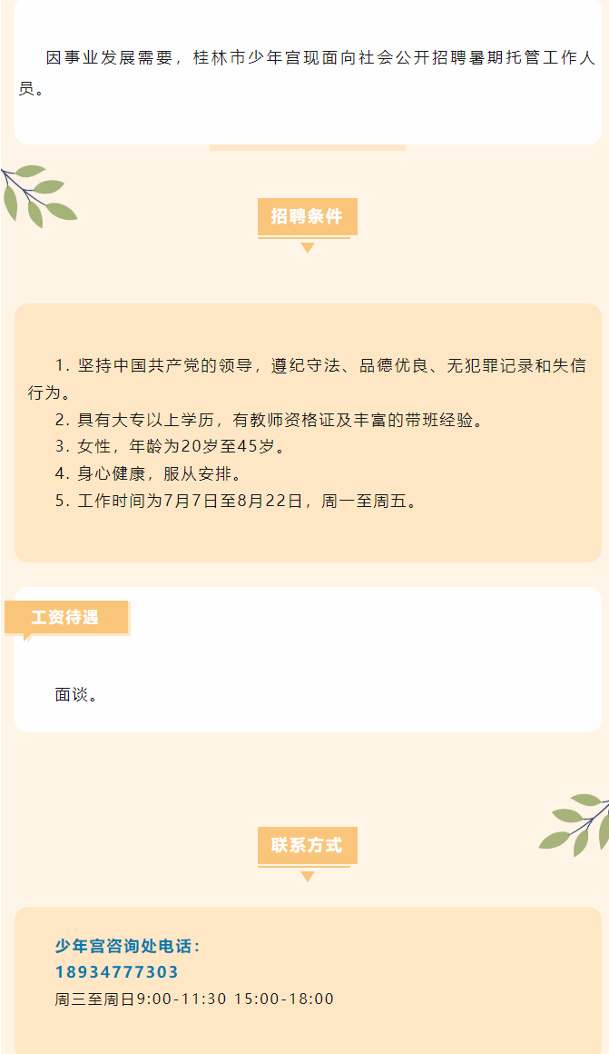 原文標(biāo)題:桂林市少年宮暑期托管營(yíng)工作崗位招聘