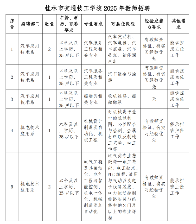 2025年桂林市交通技工學(xué)校教師招聘7人