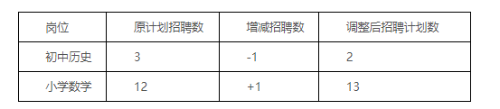 按照《2025年玉林市玉州區(qū)特崗教師招聘公告》中“招聘崗位計劃招聘人數(shù)與通過資格復審通過人數(shù)的比例達到1:3的方可開考。達不到開考比例的,減少該崗位的招聘數(shù),空出的崗位計劃數(shù)可調(diào)劑到生源充足的其他學科崗位使用。調(diào)劑方案經(jīng)玉州區(qū)特崗教師招聘領(lǐng)導小組審定。”的規(guī)定,由于初中歷史崗位計劃招聘3人,資格復審通過實際人數(shù)為7人,未達到開考比例。經(jīng)玉州區(qū)特崗教師招聘領(lǐng)導小組同意,初中歷史崗位招聘人數(shù)減少1人,減少的崗位調(diào)整到生源較充足的小學數(shù)學崗位使用,具體調(diào)整如下:
