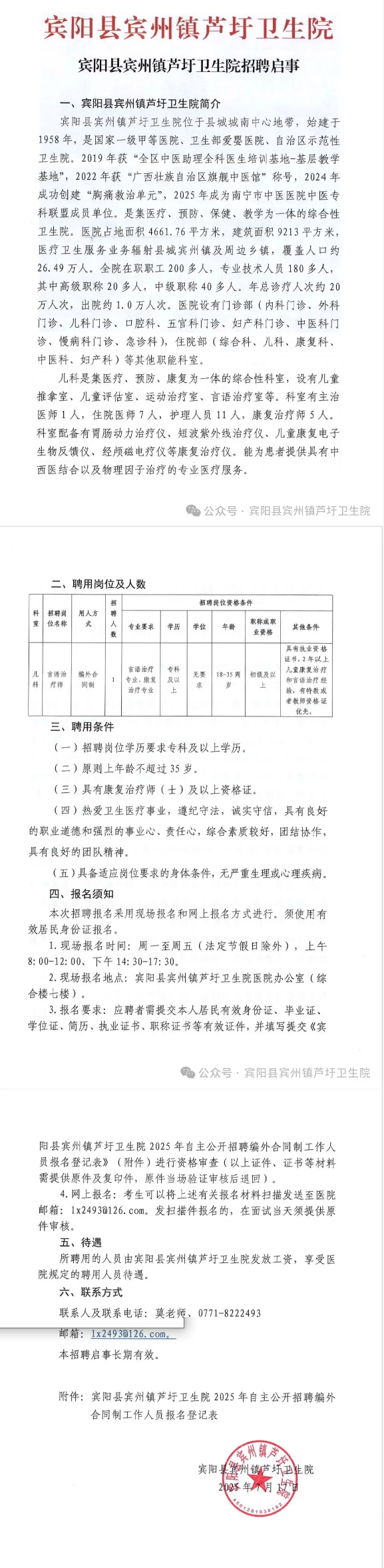 原文標題:賓陽縣賓州鎮(zhèn)蘆圩衛(wèi)生院招聘啟事