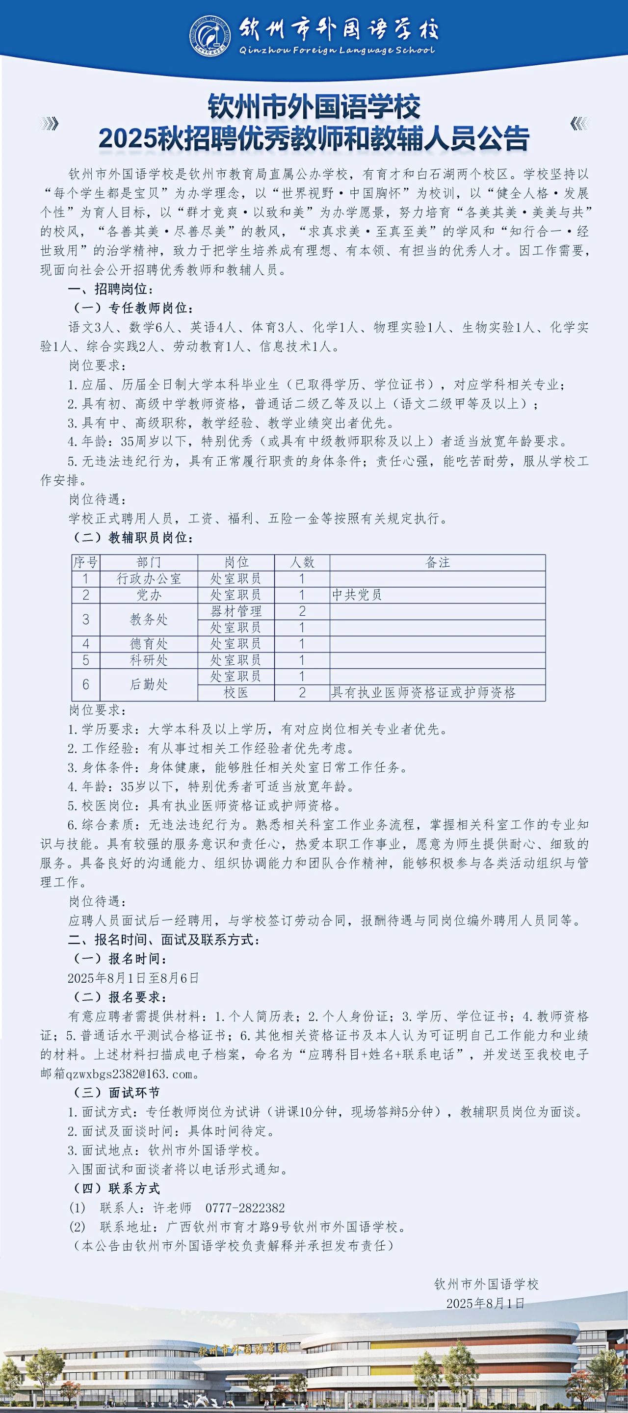2025年欽州市外國(guó)語學(xué)校秋招聘優(yōu)秀教師和教輔人員若干人