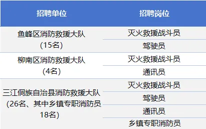為滿足社會經(jīng)濟迅速發(fā)展對消防力量的需求,積極適應(yīng)新形勢新任務(wù)新要求,結(jié)合單位編制及工作情況需要,柳州市消防救援支隊擬面向社會公開招聘政府專職消防員、鄉(xiāng)鎮(zhèn)專職消防員,熱忱歡迎熱愛消防、銳意進取、敢于挑戰(zhàn)的廣大有志青年加入。詳情如下: