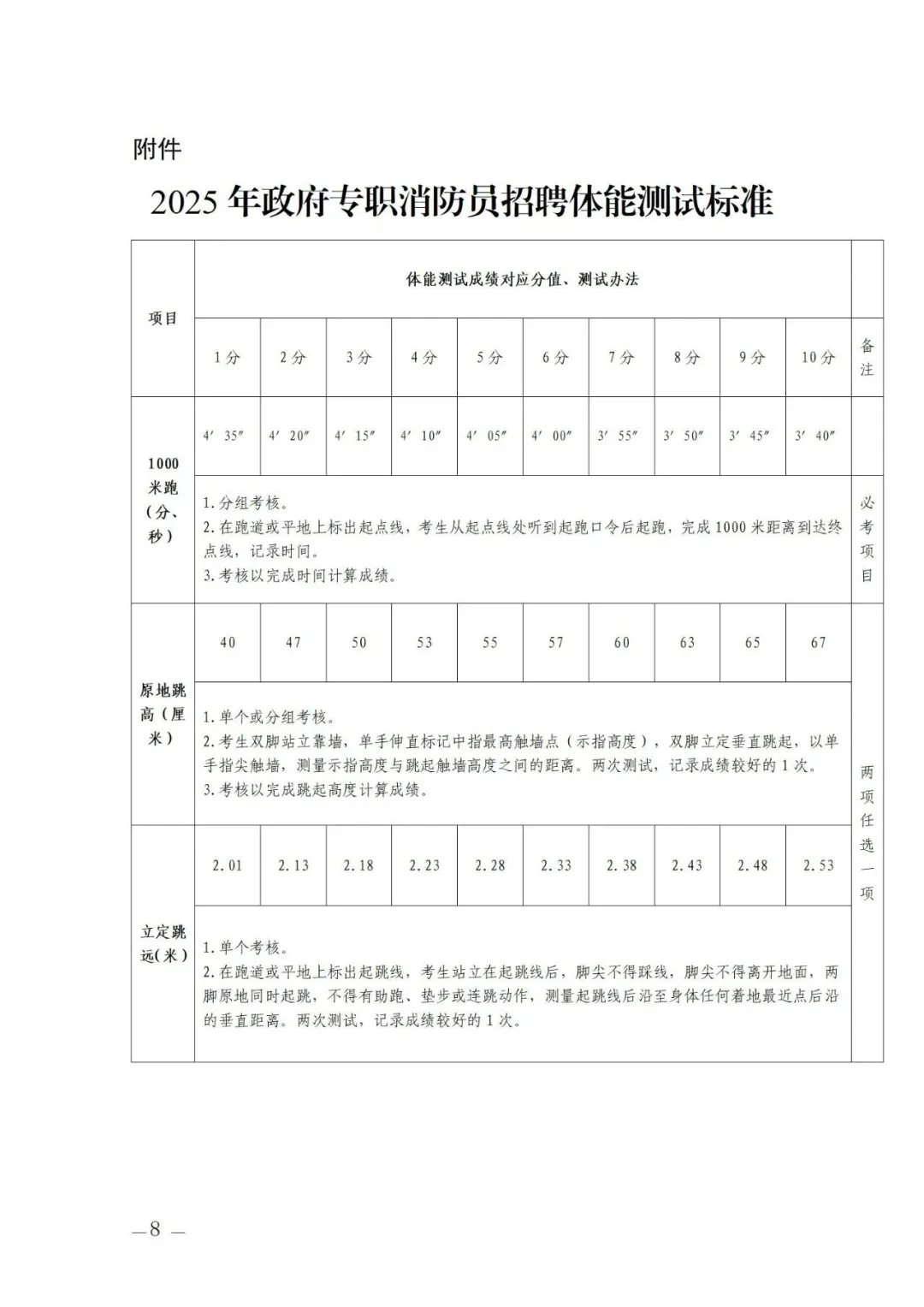 注意事項(xiàng):應(yīng)聘人員須參加體能測(cè)試,并當(dāng)場(chǎng)簽訂《天等縣消防救援大隊(duì)政府專職消防員招聘體能和崗位適應(yīng)性測(cè)試招聘對(duì)象承諾書》,體能測(cè)試有兩項(xiàng)及兩項(xiàng)以上不得分的視為不合格(標(biāo)準(zhǔn)參照附件)。未按時(shí)參加或因身體原因無(wú)法測(cè)試者,視為自動(dòng)放棄。