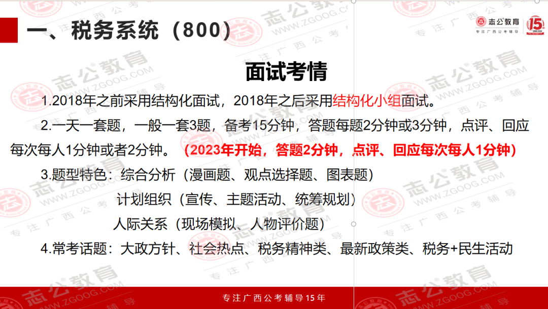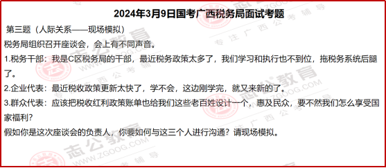 國(guó)考面試?yán)?,稅?wù)系統(tǒng)的題目一直有個(gè)很明顯的特點(diǎn),就是緊跟國(guó)家政策、貼近實(shí)際工作。尤其是2024年廣西稅務(wù)局的面試題,把這個(gè)特點(diǎn)體現(xiàn)得特別透徹??催@些題目,既能知道稅務(wù)工作實(shí)際需要什么樣的人、做什么樣的事,也能清楚面試到底要考察我們哪些核心能力。今天小志就帶大家了解一下,國(guó)考中稅務(wù)系統(tǒng)面試一些相關(guān)信息解讀: