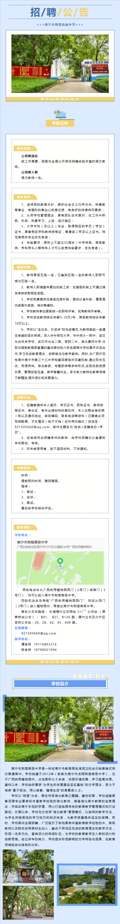 原文標題:南寧市荊楚高級中學(xué)招聘語文教師