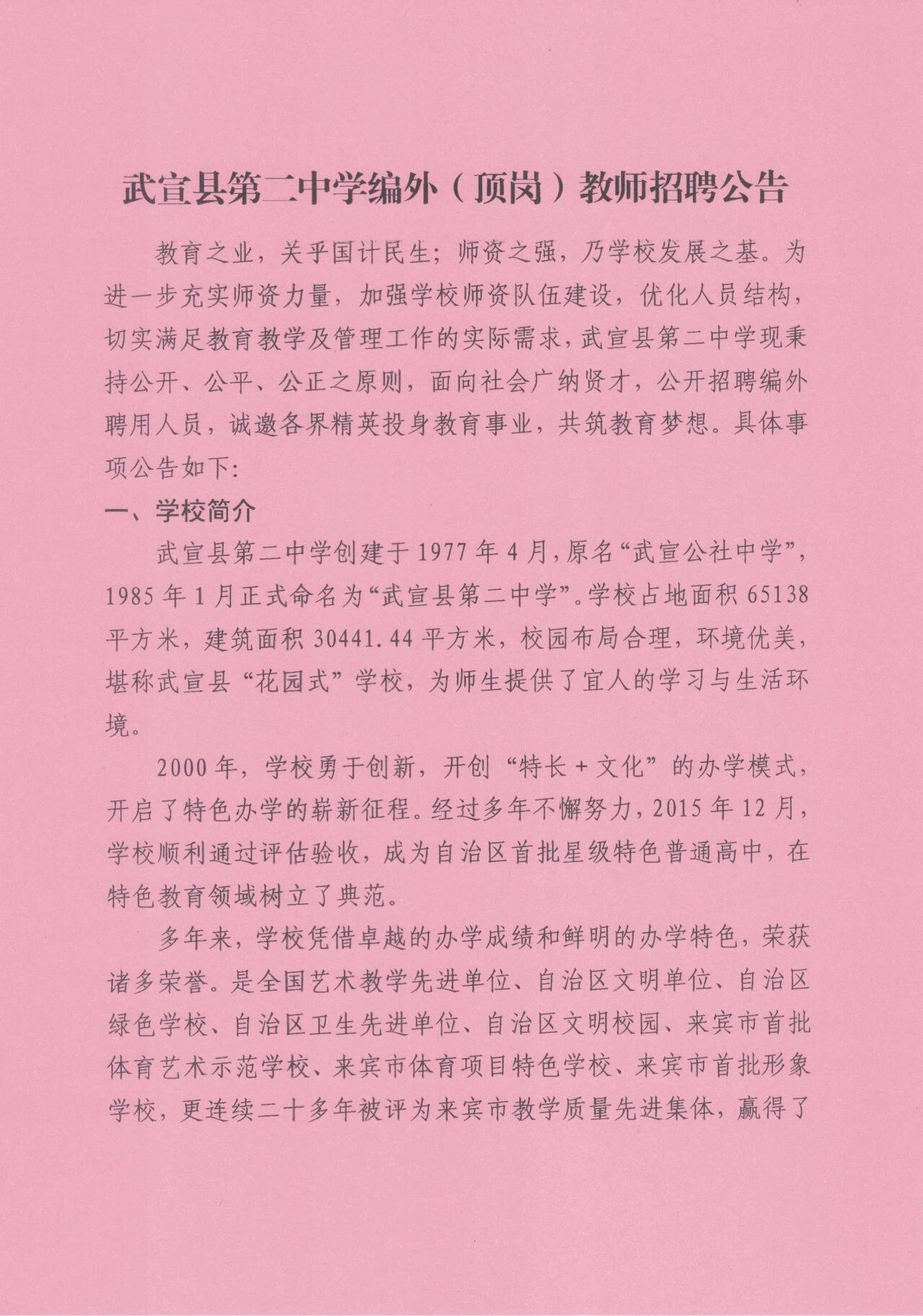 2026年來(lái)賓武宣縣第二中學(xué)編外(頂崗)教師招聘3人