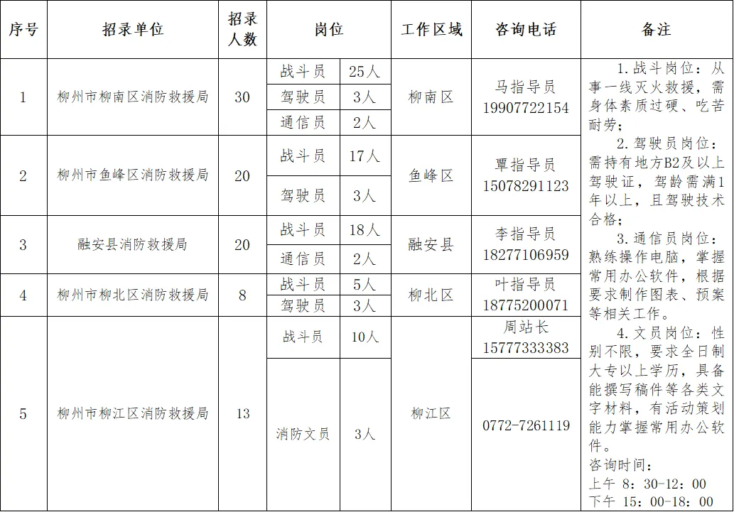 政府專職消防員91人。崗位要求:男性,身高165CM以上,雙眼裸視力4.8以上,需具備高中(中專)以上學歷,年齡為18-28周歲以下(有部隊服役經(jīng)歷或者全日制大專及以上學歷可放寬至30周歲),身體素質(zhì)過硬、吃苦耐勞、心理健康,無遺傳性、傳染性和慢性疾病,符合體檢標準。