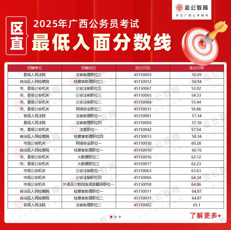 溫馨提示: 以上數(shù)據(jù)均整理自官方發(fā)布的面試資格審查公告,僅供考生參考。2025年廣西公務(wù)員考試面試入圍名單及具體分?jǐn)?shù)線以廣西人事考試網(wǎng)及各招錄單位官方通知為準(zhǔn)。如需查詢更多2025廣西區(qū)考進(jìn)面分?jǐn)?shù)、不同系統(tǒng)的區(qū)直單位分?jǐn)?shù)線,或獲取完整的廣西公務(wù)員面試名單,歡迎持續(xù)關(guān)注志公教育的后續(xù)更新。我們將及時(shí)為您整理官方信息,助您全面了解考情,科學(xué)備考。